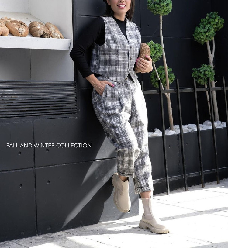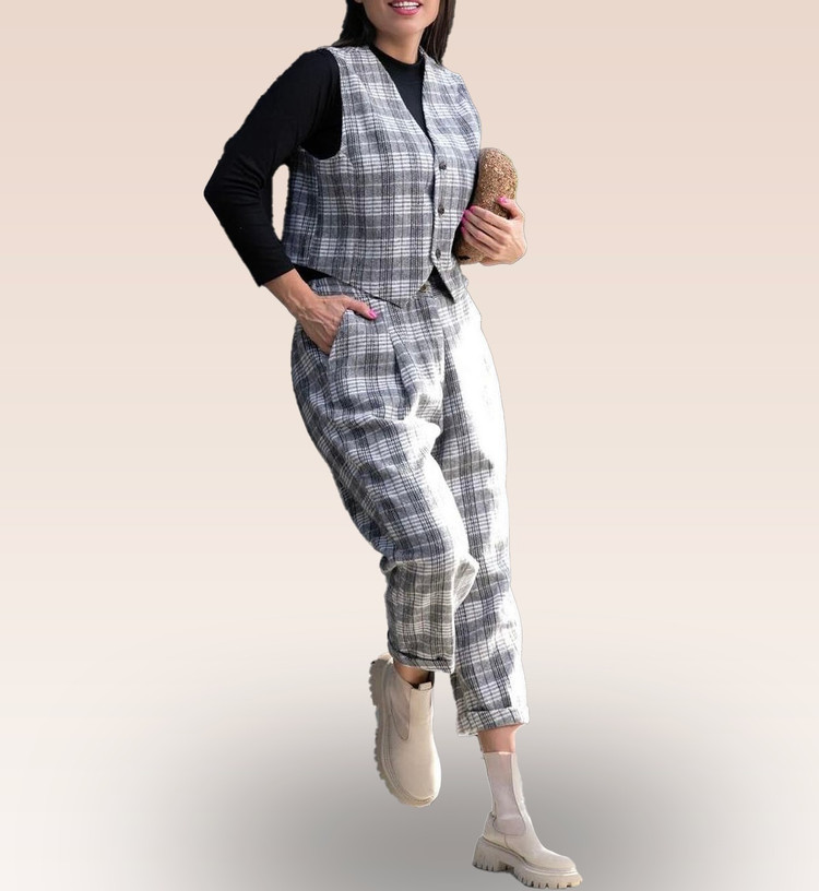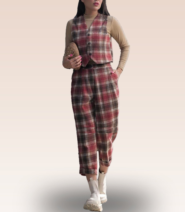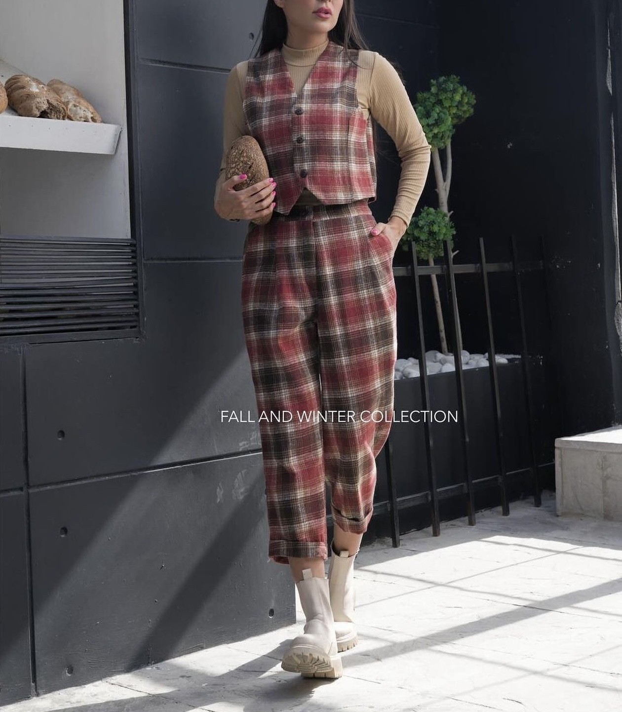جلیقه و شلوار پشمی زنانه مدل چهارخانه